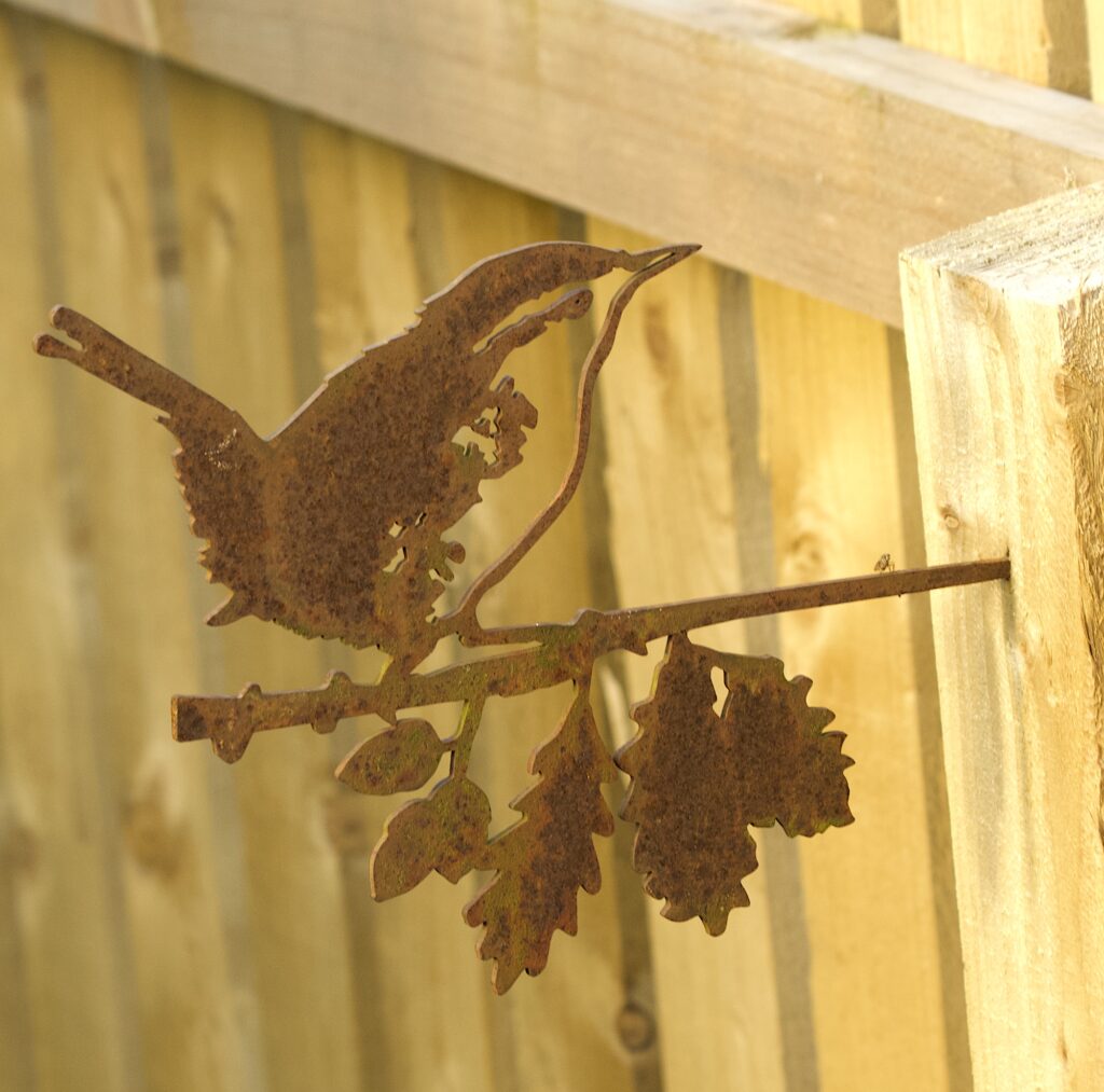 The iron Wren is taking on some wonderful colour as it starts to rust on the fence.
