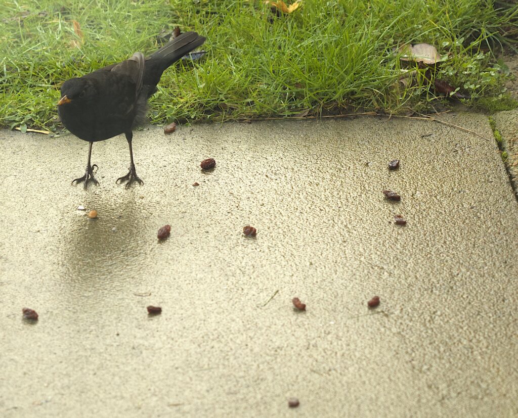 Before we got out the door the male Blackbird was sitting on the fence where the Robin was in a previous shot and just like our last house the Blackbirds are knowing that if they sit there long enough pleading hunger, one of us will throw out a handful of sultanas to keep them going. At the moment it is only one male and two of his females, know doubt word will get around over winter and their mates will learn the trick as well.