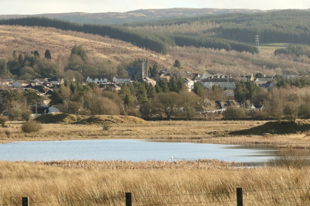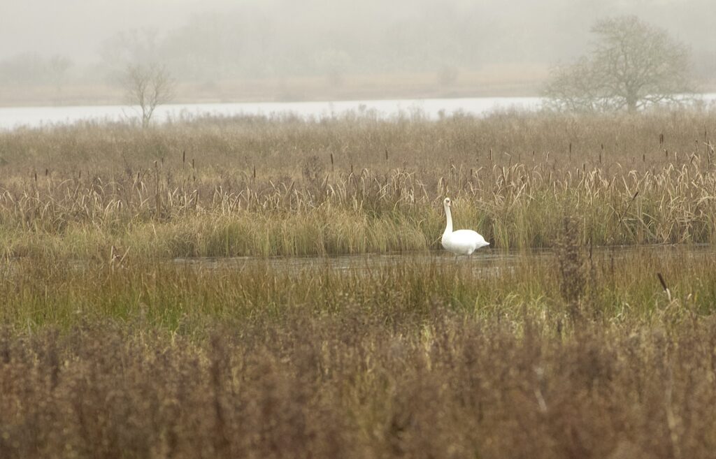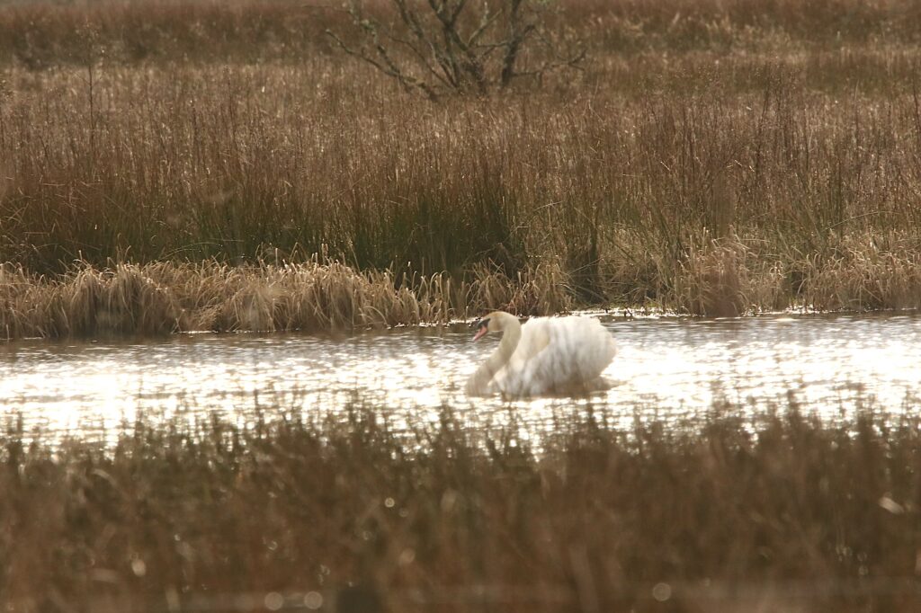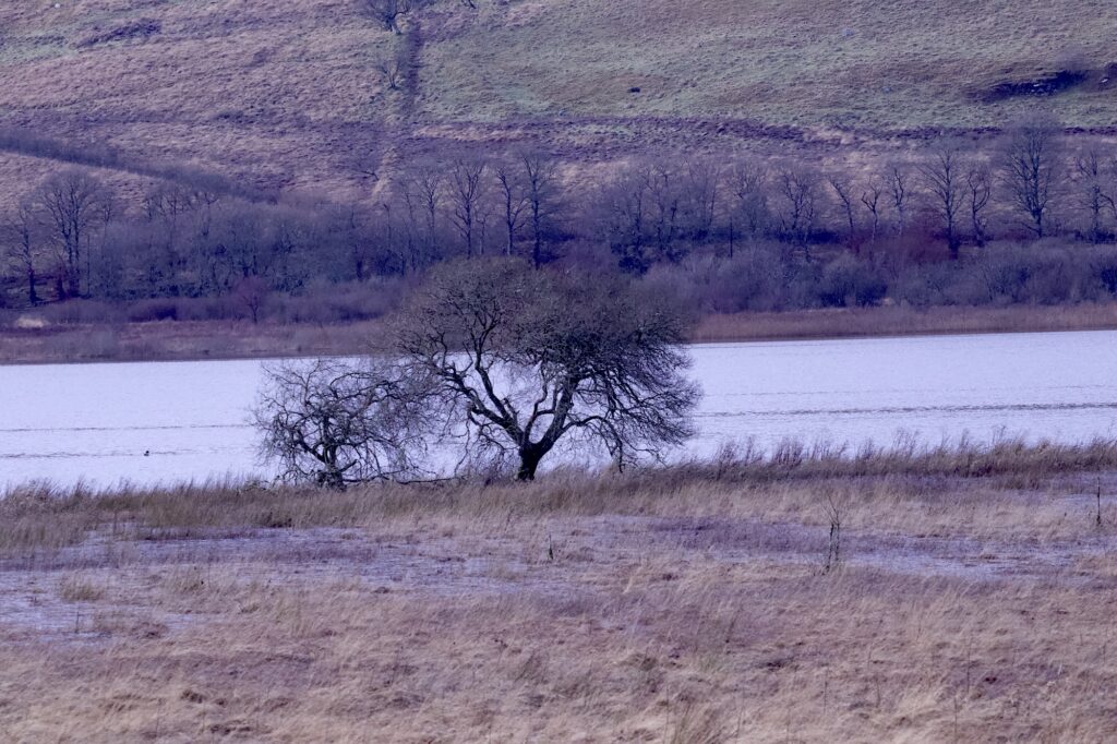 Just to show what a horrid day it was looking out over the boggy moors towards the loch with one of the two resident Swans looking on.