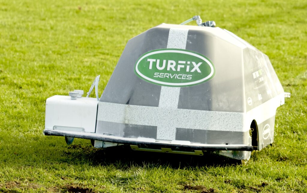 The return walk takes us past the towns football pitch and I was intrigued to see some activity on the grass with a man following a robot around. It turns out this machine can work out how true and square the soccer pitch is and as the team is up and coming (at present top of their league ) that may be important if they gain promotion. Apparently the pitch is slightly out and this machine will go round with a grass coloured paint and show the groundsman where the white lines should be and they can alter it if they wish.