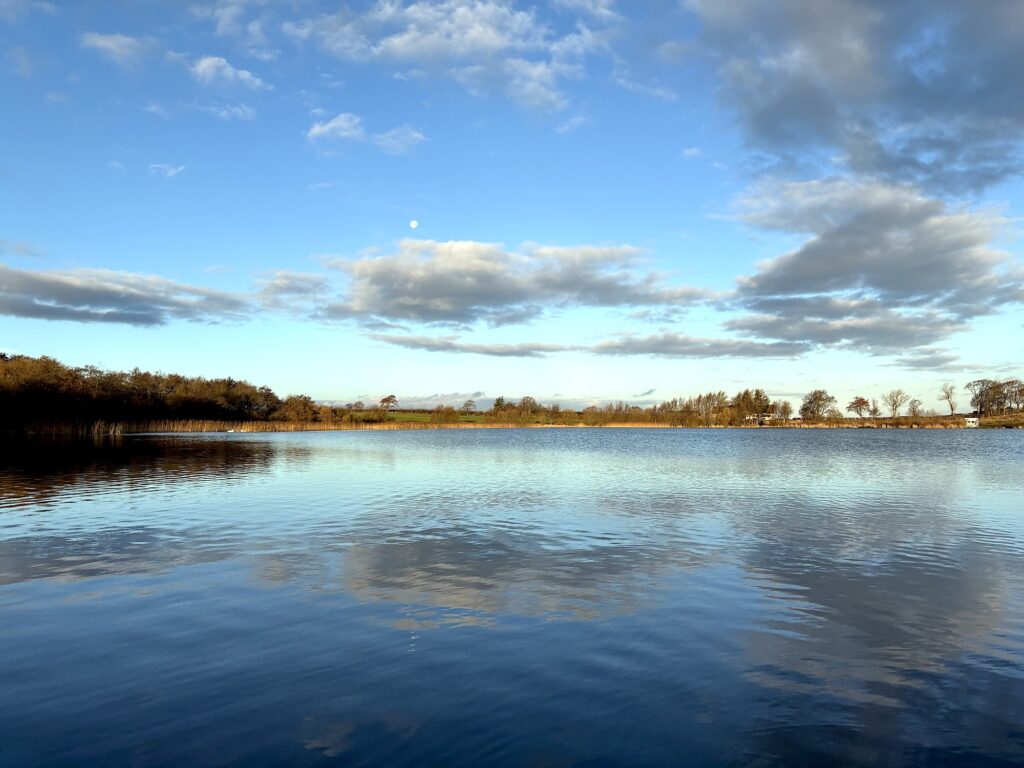 What a beautiful morning to be out on a boat fishing Belston Loch, sun shining and initially hardly a ripple on the water. Fish rising every where, could not wish to be anywhere better on such a cracking day, even the moon was still visible just above the central cloud.