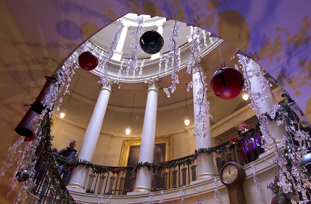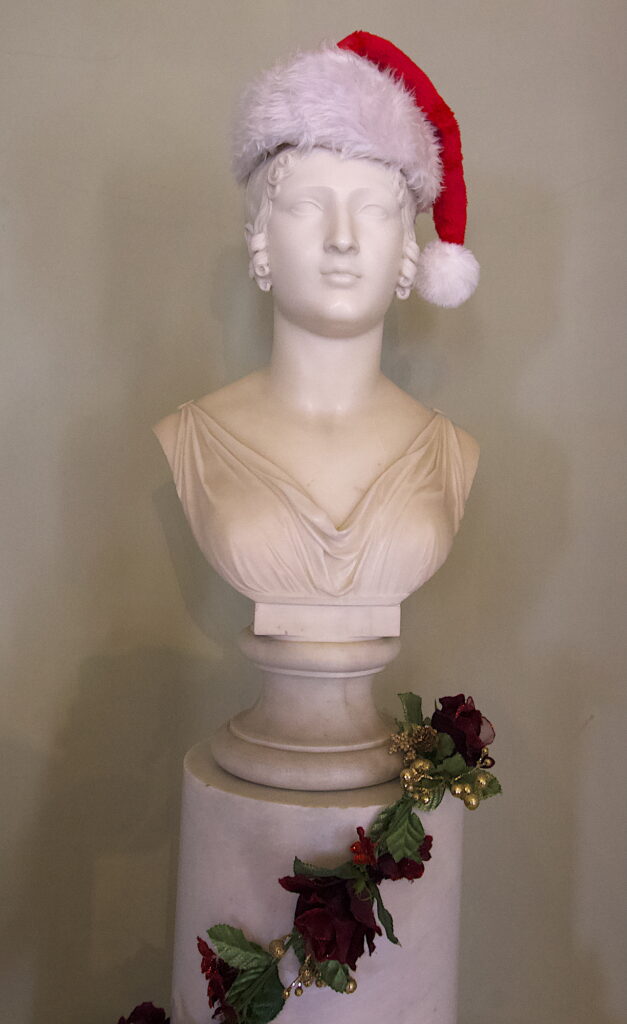 I just loved the spiral staircase and how they had decorated it, plus the modern addition of the Father Christmas hat on the bust.