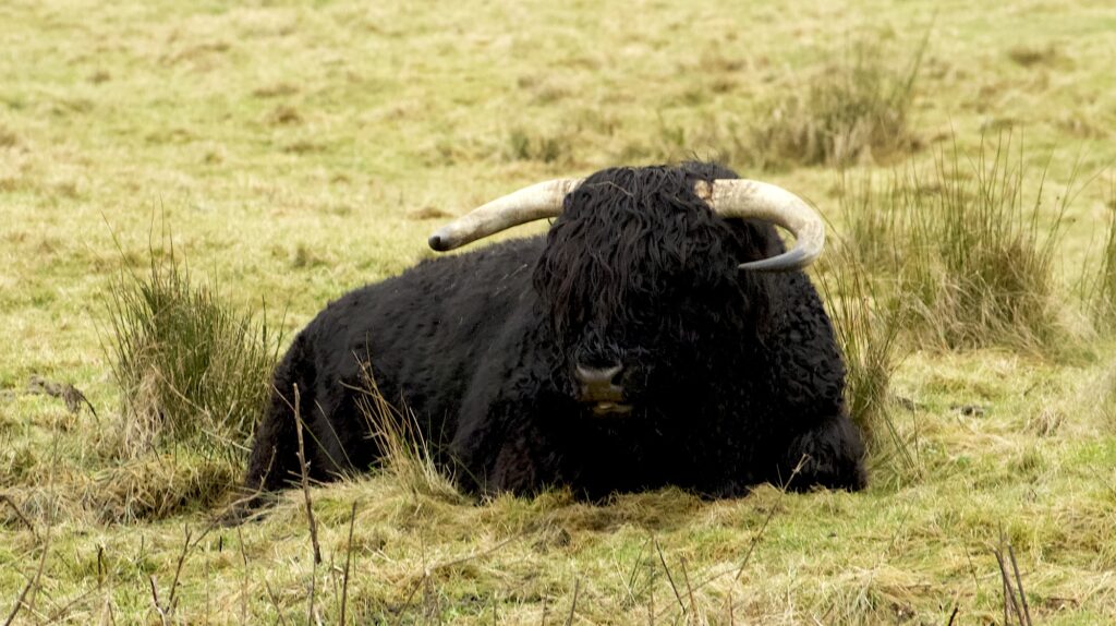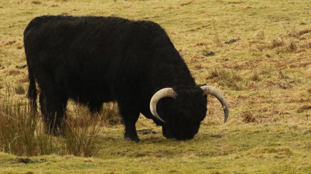 On the walk today was a massive black Highland Bull and it is really a fine specimen, stood there in the rain trying to persuade it to turn and show it’s face in all it’s splendour, but would not have it at all. Another challenge for me to achieve.