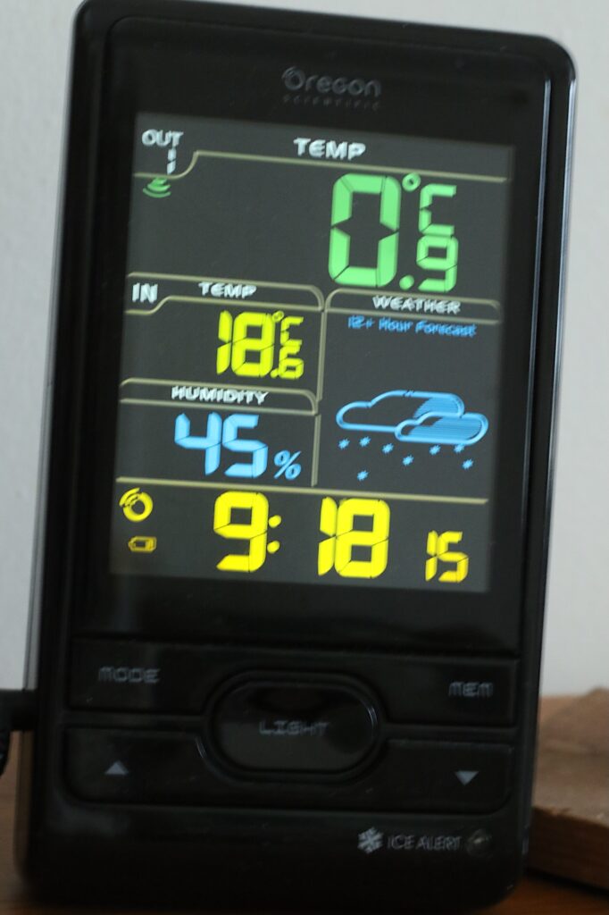 Just to show you the morning temperatures for the last four days, the two days before that were also below zero on getting up but never recorded them, as you can see at last the temperature has crept up today to be above zero, mainly because we had snow overnight. Not a great deal but enough to christen my snow shovel for the first time since last winter, put it this way a lot less hard work than the new owners of our old house is having to do at present.
