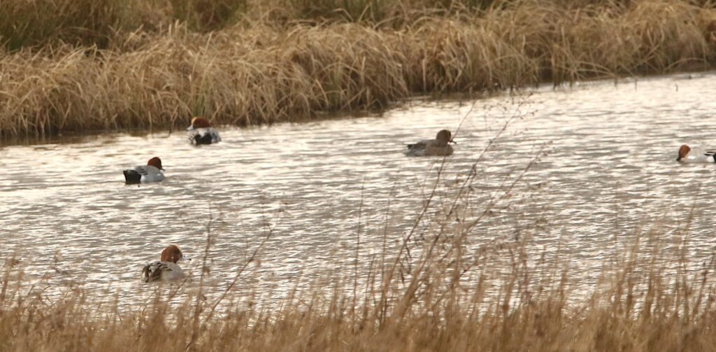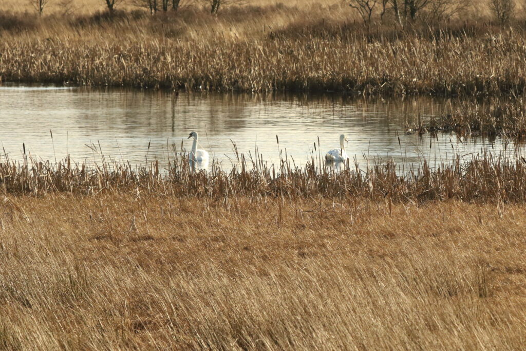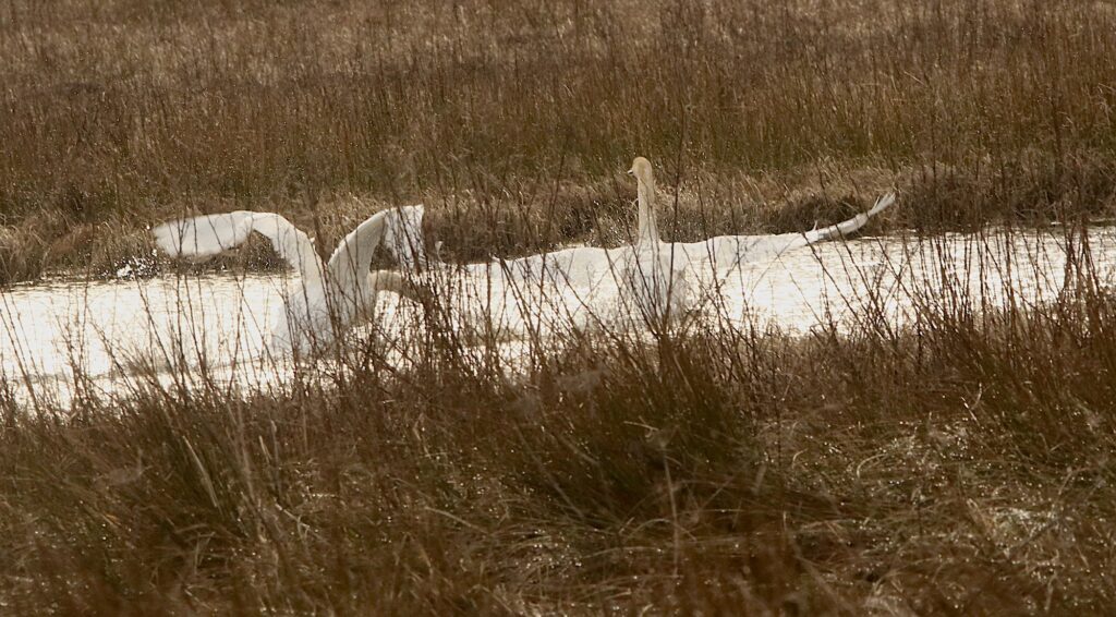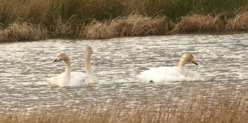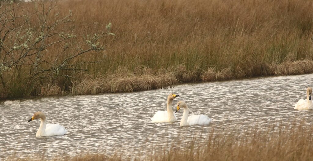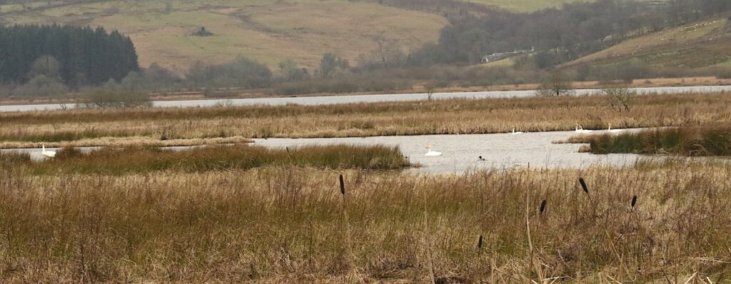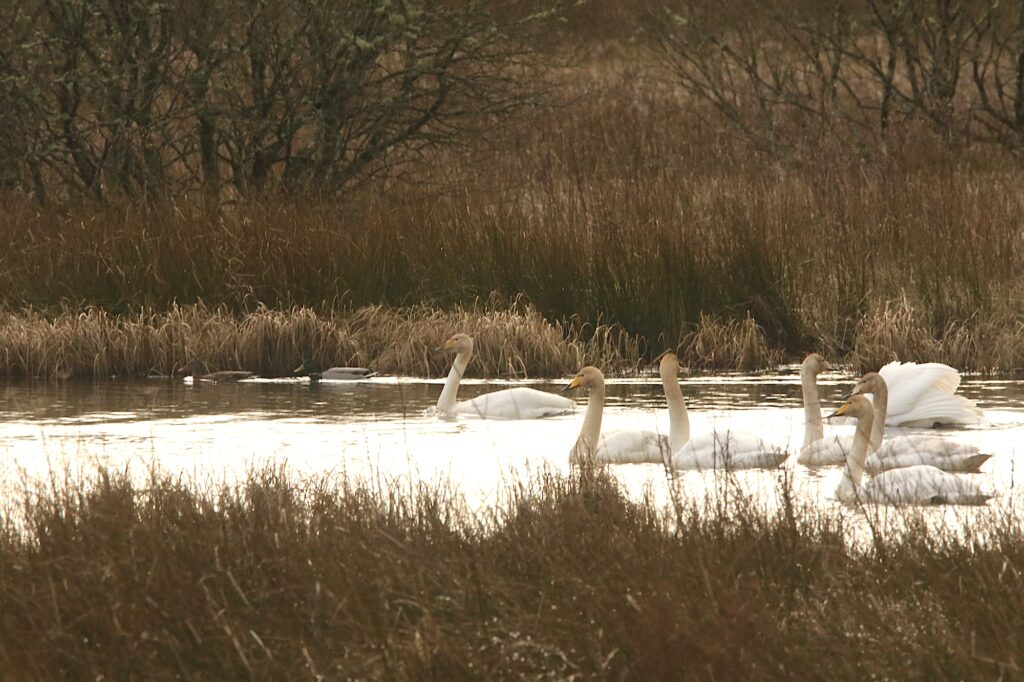 Six Whooper Swans on the small Loch from along the normal riverside walk.
