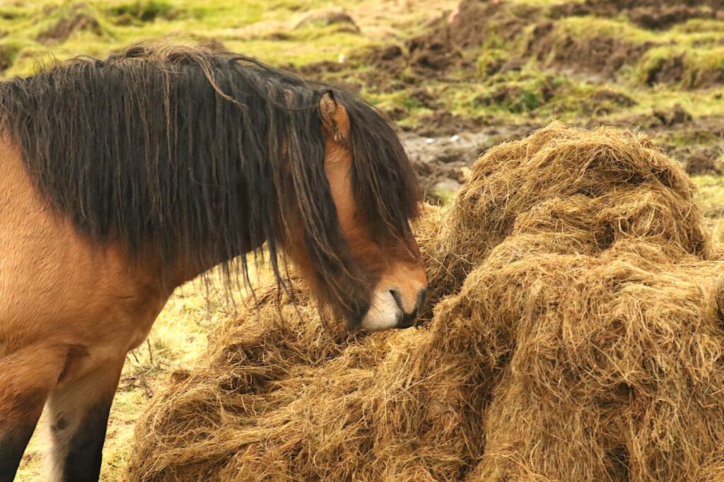In the same field was this Highland pony scrounging amongst the dung heap.