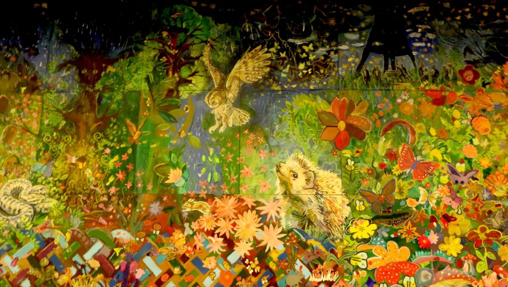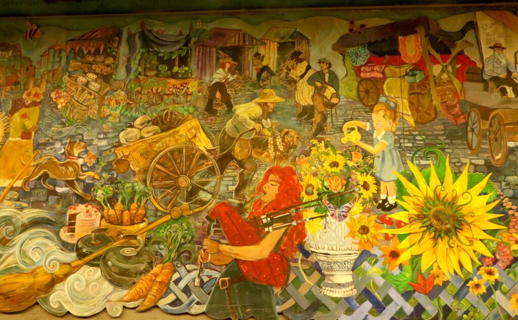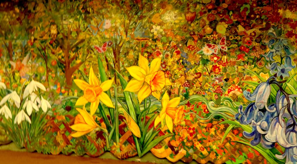 The artwork is not yet completed and this was the end piece ready to receive the last few yards of uncompleted mural.