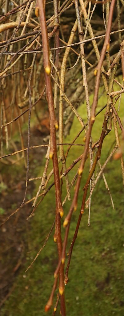 A weeping tree we have in the garden which we are not sure what it is until we get some foliage has just started budding up.