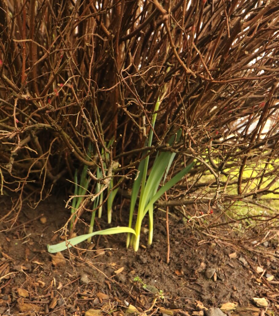 The most advanced Daffodil in the garden due (I presume) to the protection the shrub has given it in cold weather. One to remember to move once spent, away from the shrub so we can see it better.