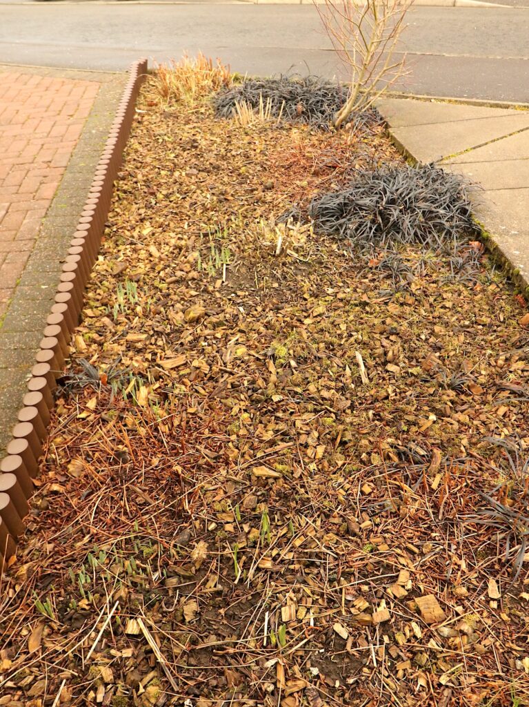 A bed between the path to the front door and our drive shows again a good selection of bulbs coming through.