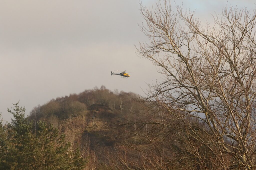 Just finishing our walk and this helicopter appeared very low belonging to the electricity board, presumably looking at power cables, though I could not see any cables on the shots I took.