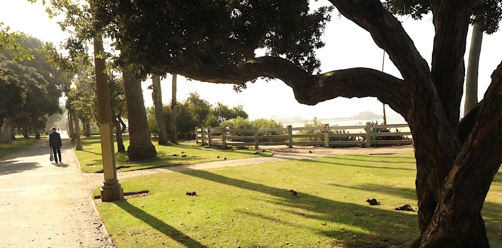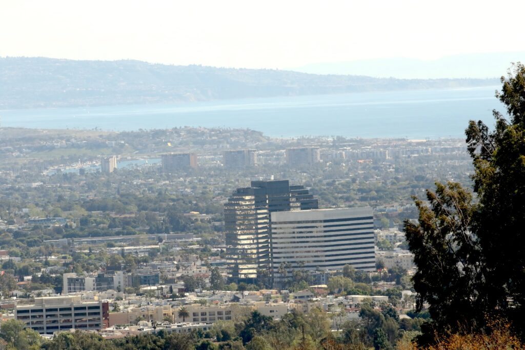 out across to the Pacific the bay where the Port of L.A. is and the shadow on the horizon is the island of Catalina.