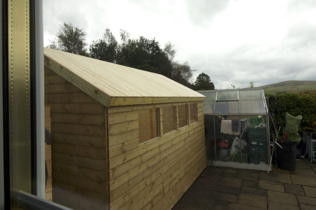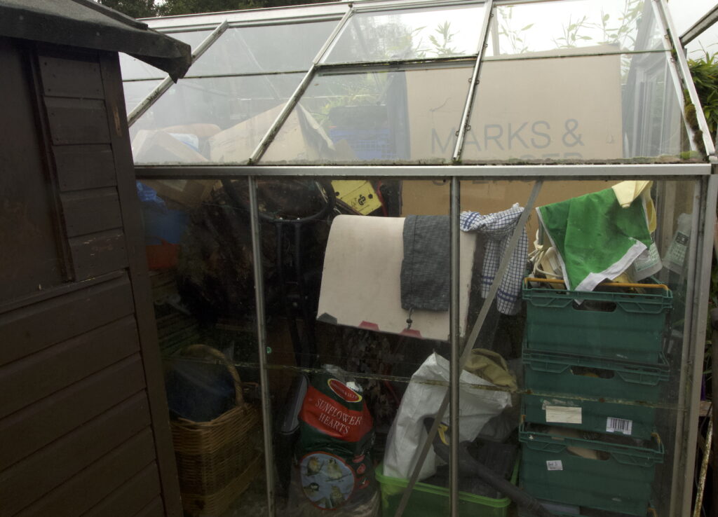 This does not really show the extent the greenhouse is full, if you notice the Tesco delivery crates bottom right, there are a total of twenty of those boxes in there, all full of “stuff” that should and will be in my new workshop before we go away on Sunday.