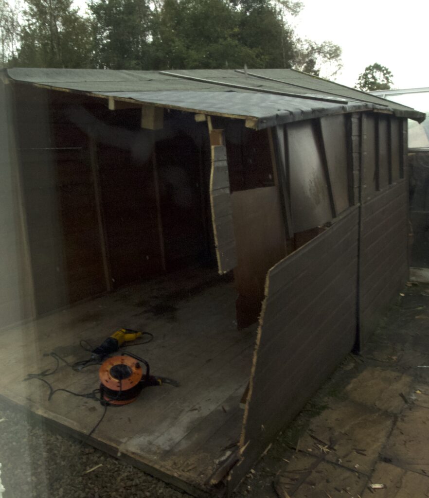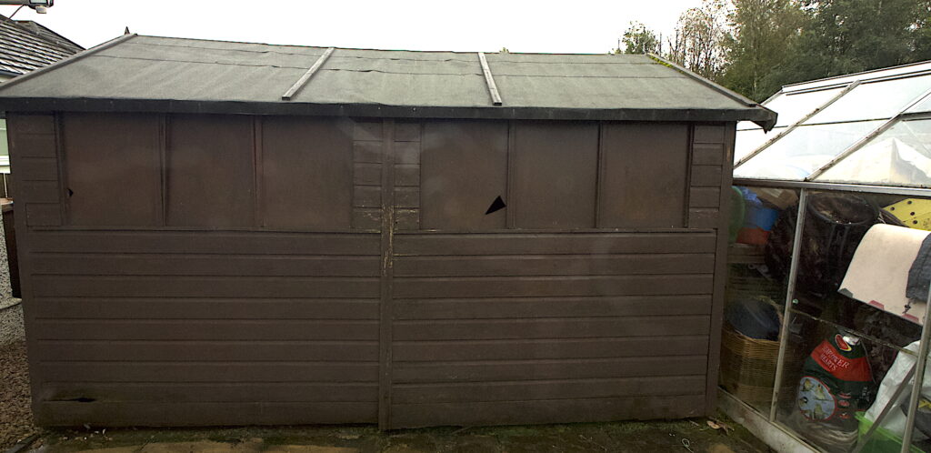 Hope to get before and after shots of the workshop. So all six windows are blacked out(or should it be browned out?), slight dip in the roof, near the ground bottom left the panels are rotted and around the back, a bit dodgy in the middle as well, so hopefully before dark I will have a newly erected workshop. You can see the small greenhouse next to it which is full upend it will be good to have it free to put some plants in over the Winter months for protection.