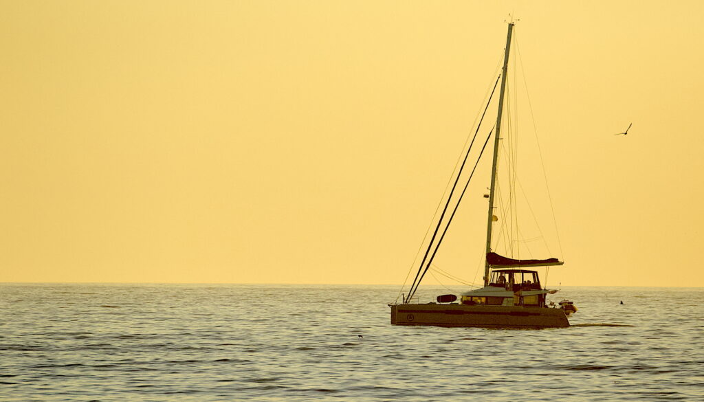 A yacht heading home after a day out sailing.