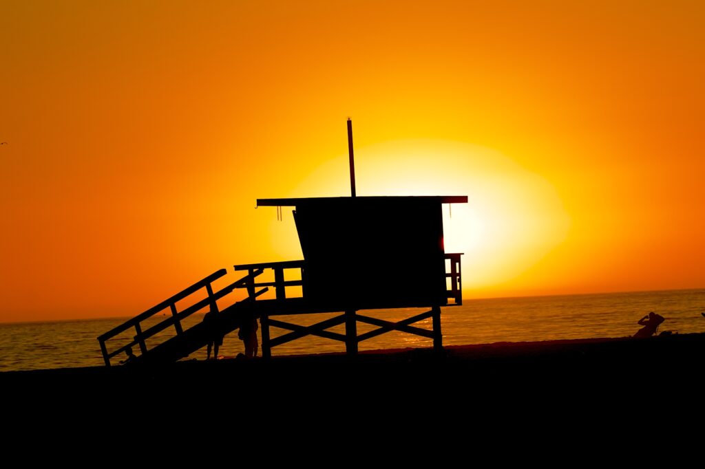 Finally the sunset hidden behind the iconic lifeguards hut.